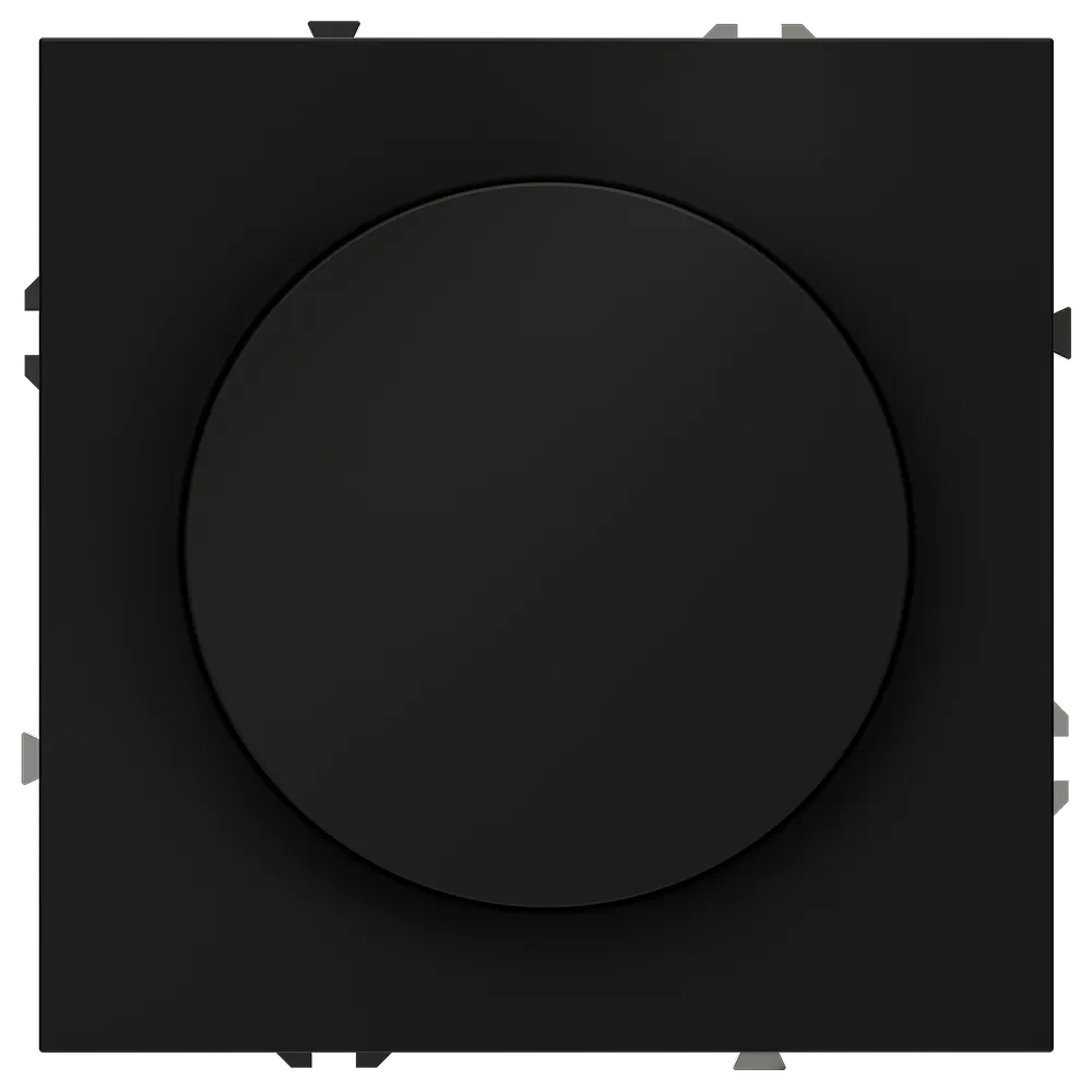 Устройство работает как полноценный выключатель (нажатие включает/выключает свет) и как диммер (поворот регулирует яркость от 5 до 600 Вт). Совместим с светодиодными, галогенными и лампами накаливания, поддерживающими фазовое диммирование, включая современные LED-источники благодаря технологии отсечки по заднему фронту — без мерцания, шума и резких скачков напряжения.